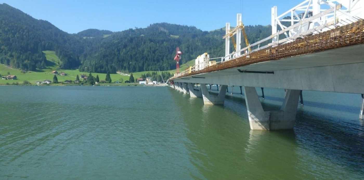 Die sorgfältig gestaltete Spannbetonbrücke mit konstantem, leichtem Querschnitt widerspiegelt die hohen Anforderungen, welche die Umgebung an dieses Bauwerk stellt. Das Tragwerkskonzept wurde, neben der Wirtschaftlichkeit und der Einbindung in die Umgebung, insbesondere durch den schlechten Baugrund (Seeablagerungen bis >100 m) und die geforderte Erstellung ohne Seeabsenkung beeinflusst.